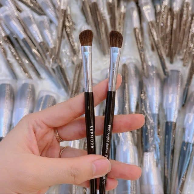 - Cọ khối sống mũi - blending mắt Sephora 13 được xem là bản dupe của Mac 275 vì shape cọ được thiết kế vạt xéo tương tự, cọ xéo nhẹ giúp dễ dàng blending hốc mắt lại chó thể sử dụng như một cọ tạo sóng mũi.