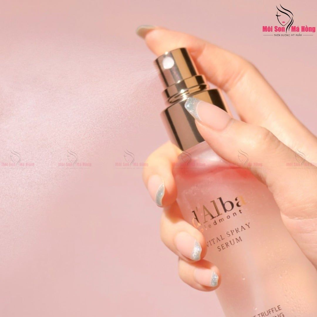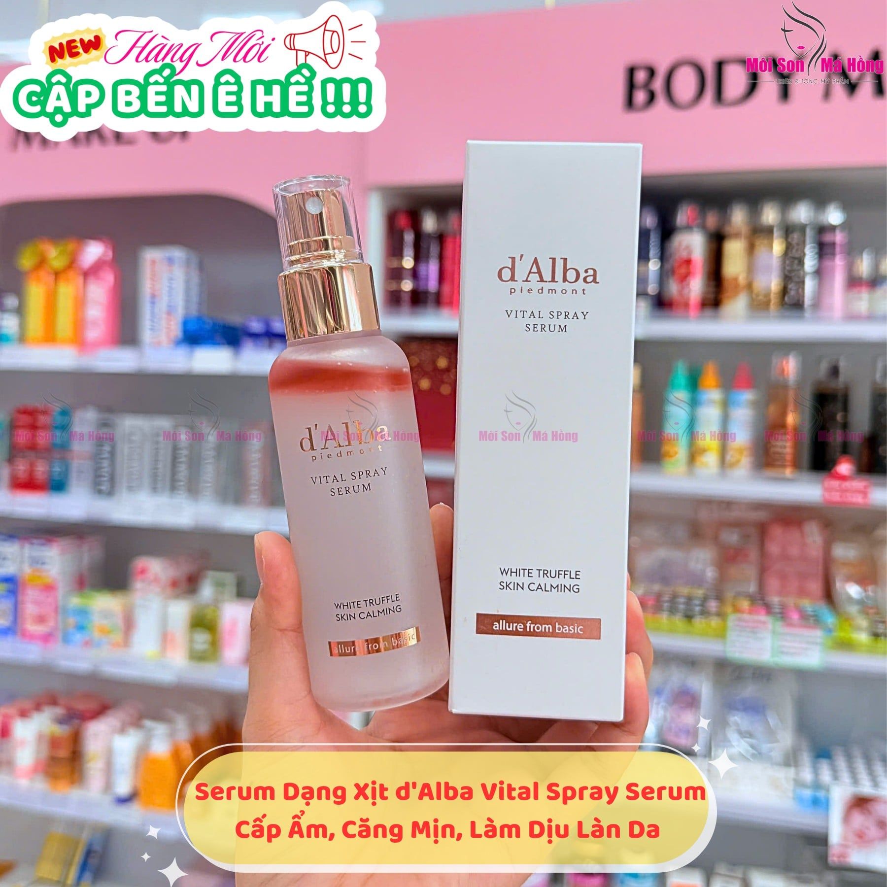 - Serum Dạng Xịt d'Alba Vital Spray Serum Cấp Ẩm, Làm Dịu Da với thành phần chứa Nấm Truffle Trắng tinh chiết từ Piedmont, Italy giúp cung cấp khoáng, dưỡng chất dồi dào cho da.