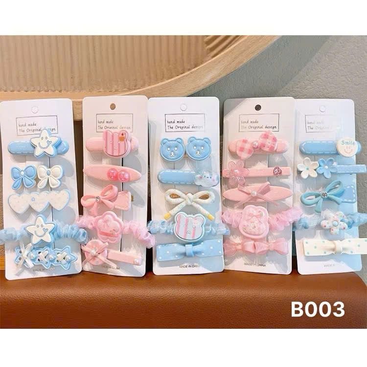 Set kẹp chun hồng xanh B003