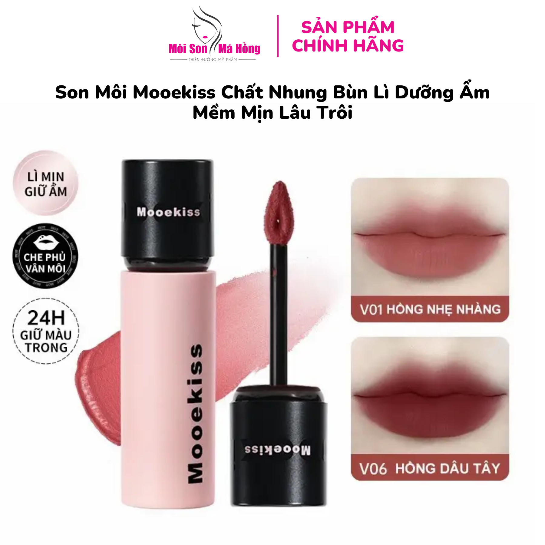 Son Môi Mooekiss Chất Nhung Bùn Lì Dưỡng Ẩm Mềm Mịn Lâu Trôi