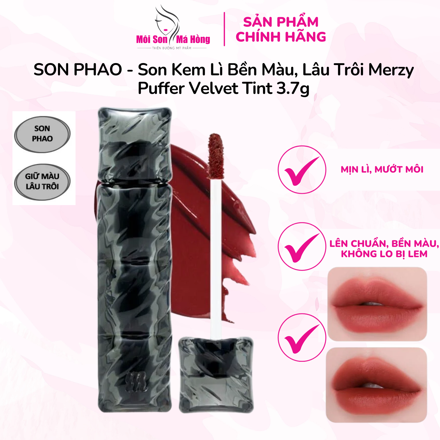 [SON PHAO] Son Kem Lì Bền Màu, Lâu Trôi Merzy Puffer Velvet Tint 3.7g