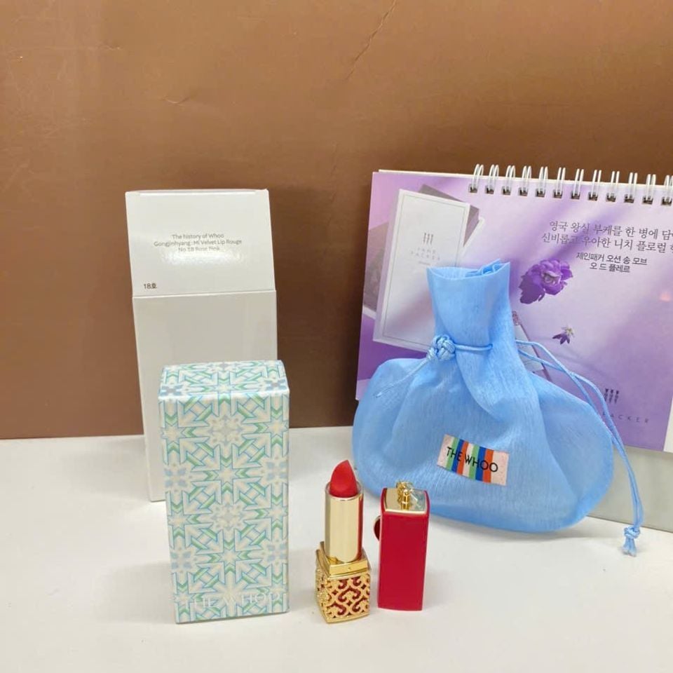 Son Thỏi + Túi The Whoo Velvet Lip rouge 3.5g #18 Rose Pink