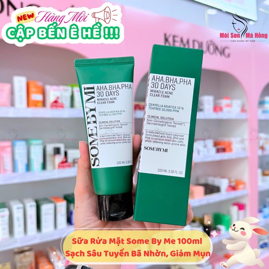 Sữa rửa mặt sạch sâu cho da mụn Some By Mi 30 Days Miracle Acne Clear Foam 100ml với công thức đặc biệt chứa phức hợp AHA – BHA – PHA hỗ trợ làm sạch tận sâu lỗ chân lông, lấy đi hết bụi bẩn, bã nhờn cho làn da thông thoáng không còn bí tắc, nhưng vẫn nhẹ dịu không gây kích ứng hay khô căng da, làm giảm mụn trứng cá và tình trạng da mẩn đỏ, kích ứng hiệu quả.
