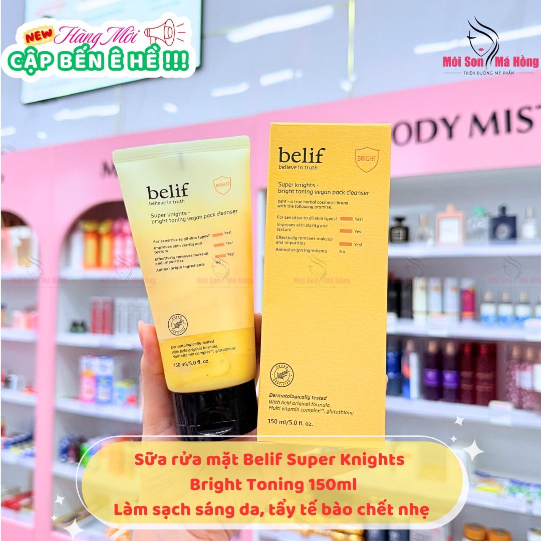 -Sữa Rửa Mặt Belif Super Knights Bright Toning Vegan Pack Cleanser 150ml là lựa chọn lý tưởng cho những ai muốn chăm sóc da một cách tự nhiên, giúp làn da sáng khỏe và tràn đầy sức sống.