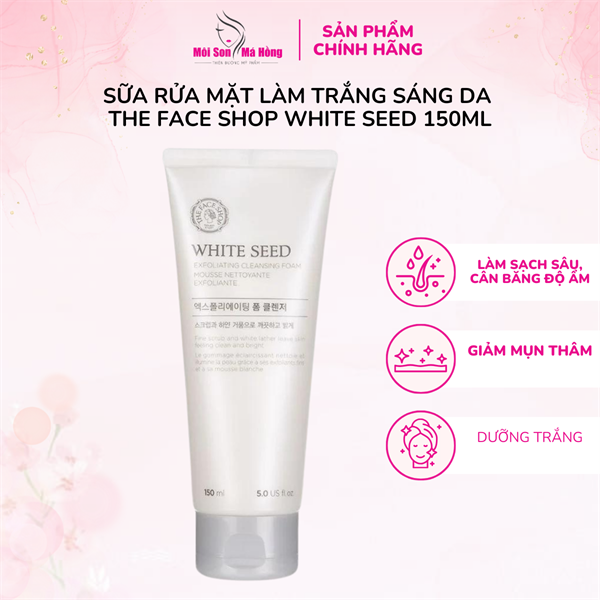 - Sữa rửa mặt sáng da The Face Shop White Seed Exfoliating Cleansing Foam công năng 2 trong 1, vừa làm sạch da, vừa giúp loại bỏ tế bào da chết hiệu quả sẽ là lựa chọn thích hợp cho những cô nàng bận rộn.
