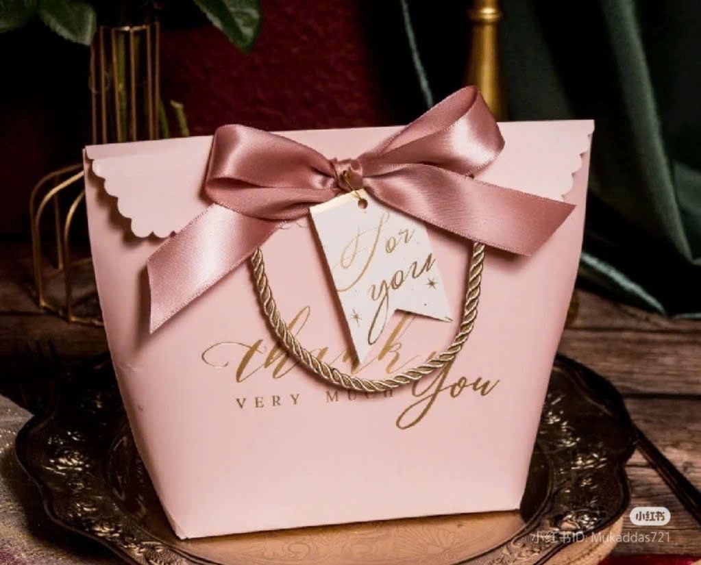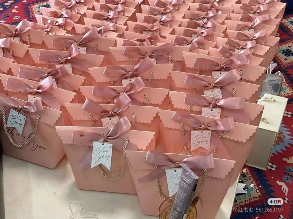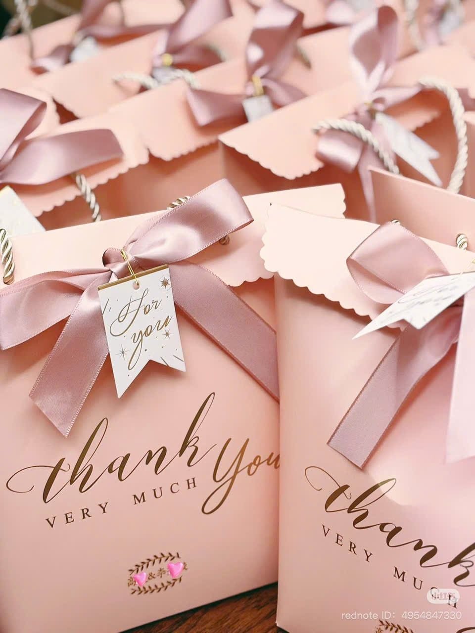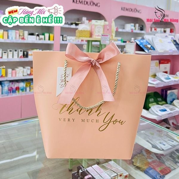 Túi Giấy Đựng Quà Kèm Nơ Thank You Very Much 17*8.5*20.5 cm #L Hồng