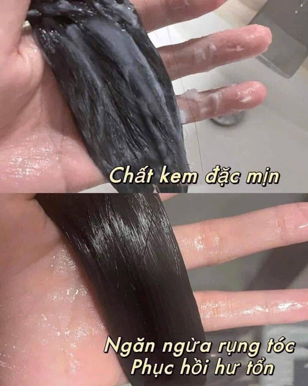 - Kết cấu: Chất kem đặc, mịn, có màu trắng đục. Khi thoa lên tóc, kem thẩm thấu rất nhanh mà không gây cảm giác bết dính hay nặng tóc.
