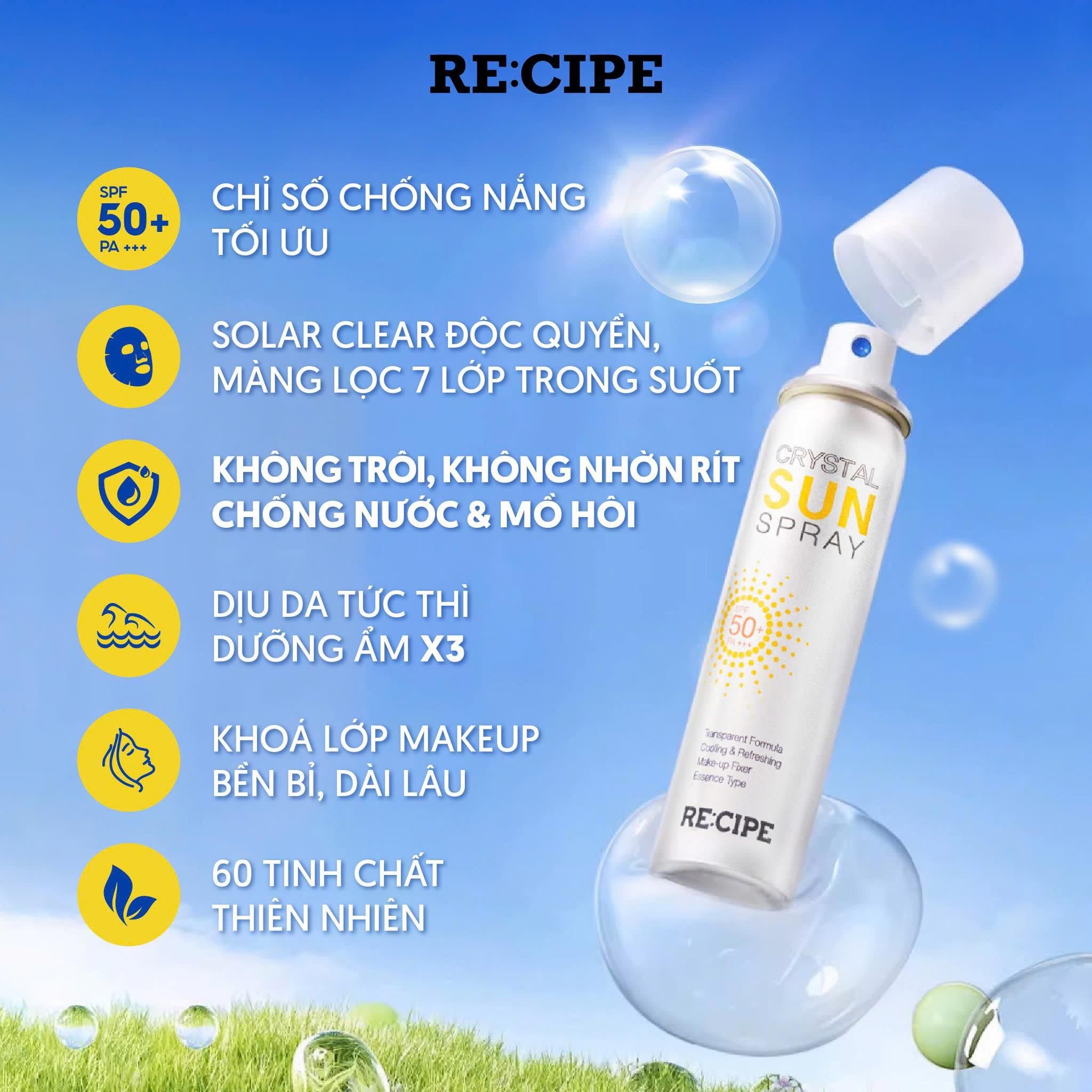 Xịt Chống Nắng Tối Ưu Cho Mặt & Body RECIPE Crystal Sun Spray RE:CIPE SPF50+ PA+++ Hàn Quốc 180ml